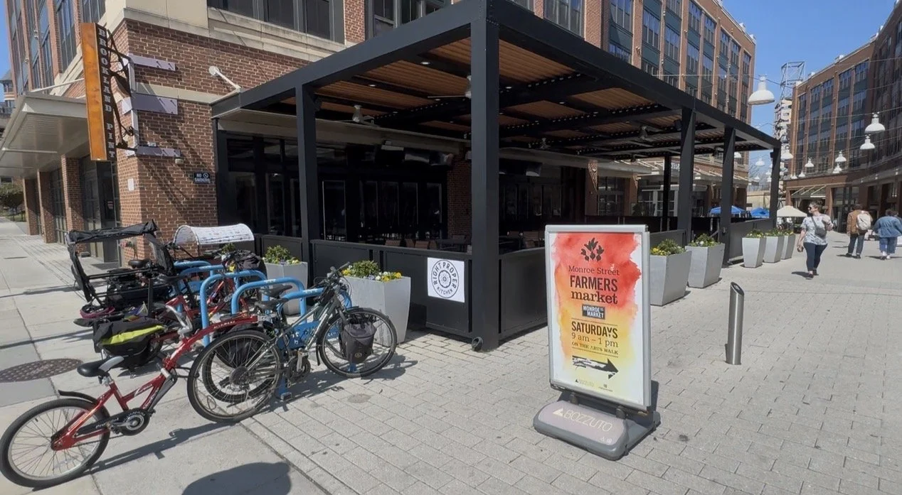 A public parking garage is located in the Cornerstone building of Monroe Street Market at 625 Monroe St. NE. Rates and hours can be found here.