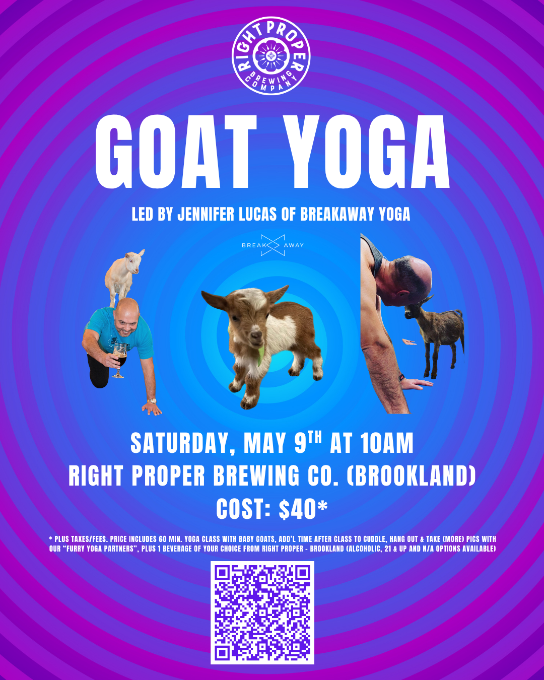 Get ready for a feel-good experiencefilled with movement, laughter, and plenty of playful baby goat moments. BreakAway’s Goat Yoga is returning to our Taproom.